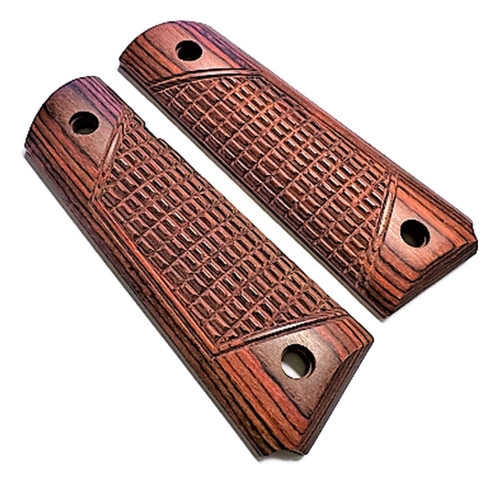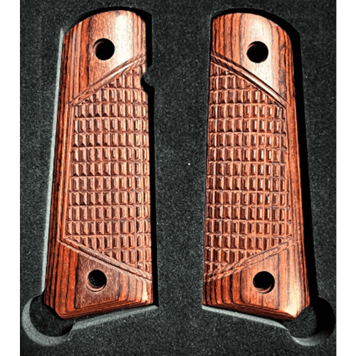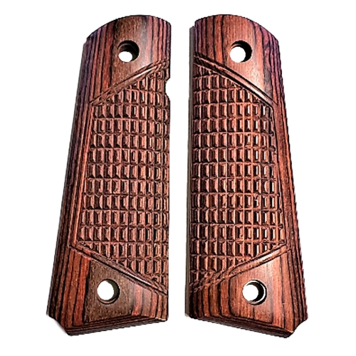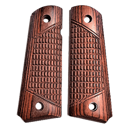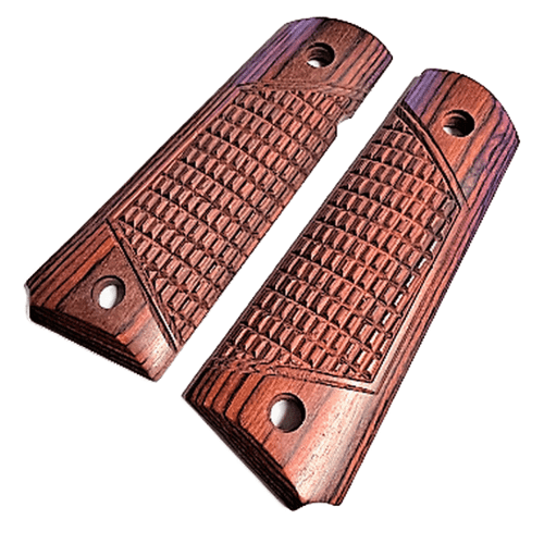 These are Rosewood ambidextrous laminate grips that look and feel better than plastic grips.