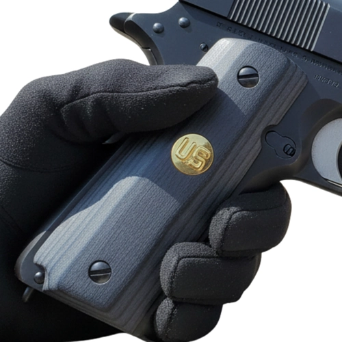 These 1911 full size black rosewood grips with gold US medallion are made for shooters who want their pistol to carry a statement. Deep black rosewood grain, double diamond checkering, and a bold gold US medallion pressed flush into both panels — patriotic, sharp, and built to last.