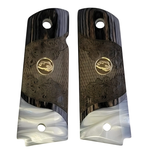 1911 Rosewood Grips – Full Size Carved Black Rosewood Grips with Acrylic Pearl & Colt Medallion