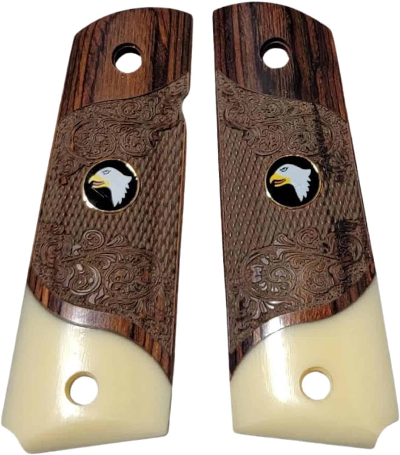 1911 Full Size Carved Rosewood Grips w/Acrylic Ivory Accent with Screaming EagleMedallion
