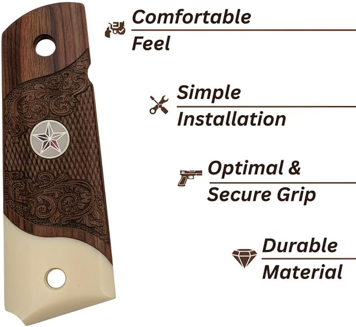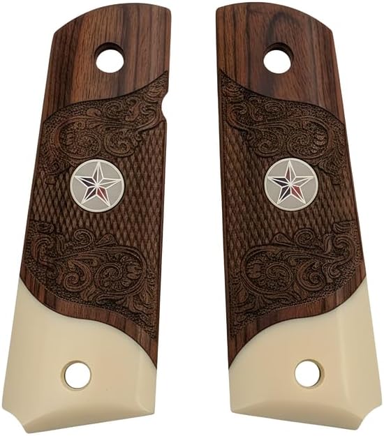 1911 Full Size Carved Rosewood Grips w/Acrylic Ivory Accent with Texas Star Medallion