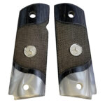 1911 Full Size Checkered Black Rosewood Grips w/Acrylic Pearl Accent and Silver Medallion with Rearing Horse