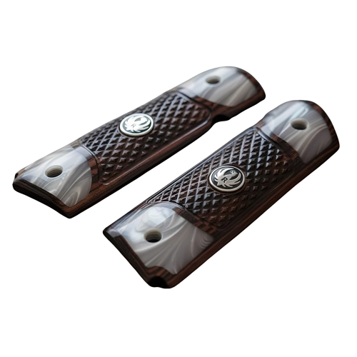 Checkered Rosewood and Acrylic Pearl Grips with Black Ruger Medallion