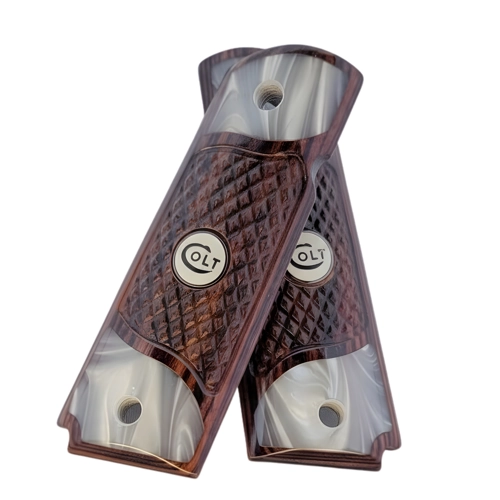 These grips feature a stunning acrylic pearl bottom accent and a classic medallion that complements any finish, from stainless steel to deep blued steel. It’s the kind of firearm personalization you’d expect from a custom shop, not from a set of 1911 grips at this price point.