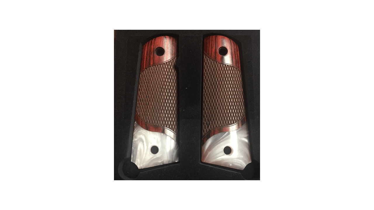 1911 full size checkered rosewood gun grips with acrylic pearl accent