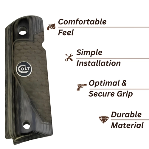 If you’re searching for reliable black rosewood 1911 grips, premium Colt 1911 rosewood grips, or custom dragon scale 1911 grips, this set provides a durable, performance-focused replacement built for long-term use.