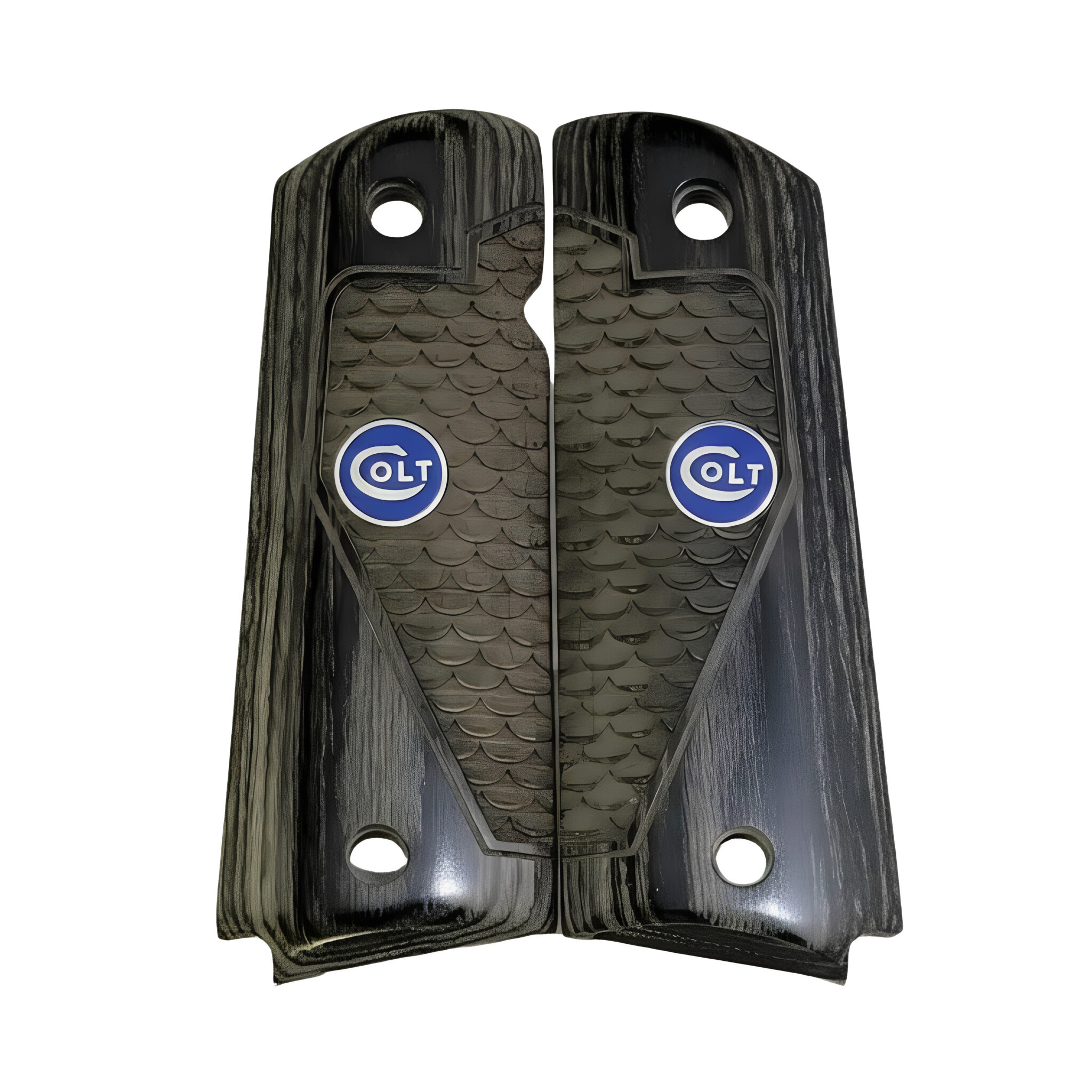 1911 Full-size Colt and Clones Black Rosewood Grips with Dragon Scales and Blue COLT Medallion