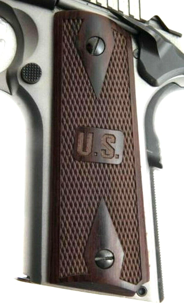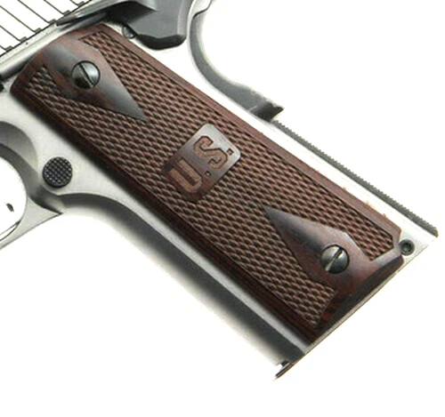 Enhance your firearm with 1911 Full Size Double Diamond Rosewood Gun Grips, featuring classic checkered double diamond texturing and a bold US embossed design for patriotic style and premium feel.