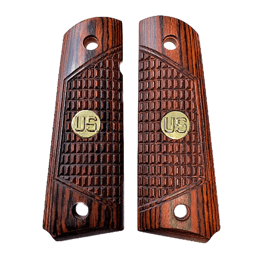 Premium Rosewood Colt Grips fit full size frames (except double stack). Colt 1911’s are the standard that all others follow. They are aggressively styled. These grips are finished in NC and will make you proud. Grips are compatible with Colt, Kimber, Springfield, Remington, Taurus, Ruger SR1911, Sig, S&W, Rock Island, GSG 1911 plus 1911 and Government Clones. Some models will require slight sanding to accommodate Ambi Safety. Comes in Gift box with bonus 4 Gold screws