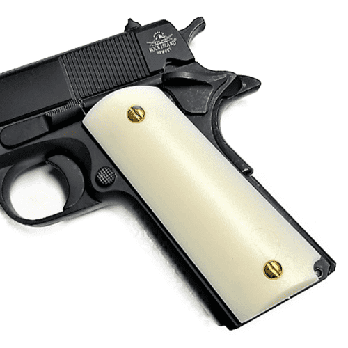 • 1911 Gun Grips Acrylic Pearl White w/Black and Gold Eagle 1911 Gun Grips Acrylic Pearl White w/Black and Gold Eagle