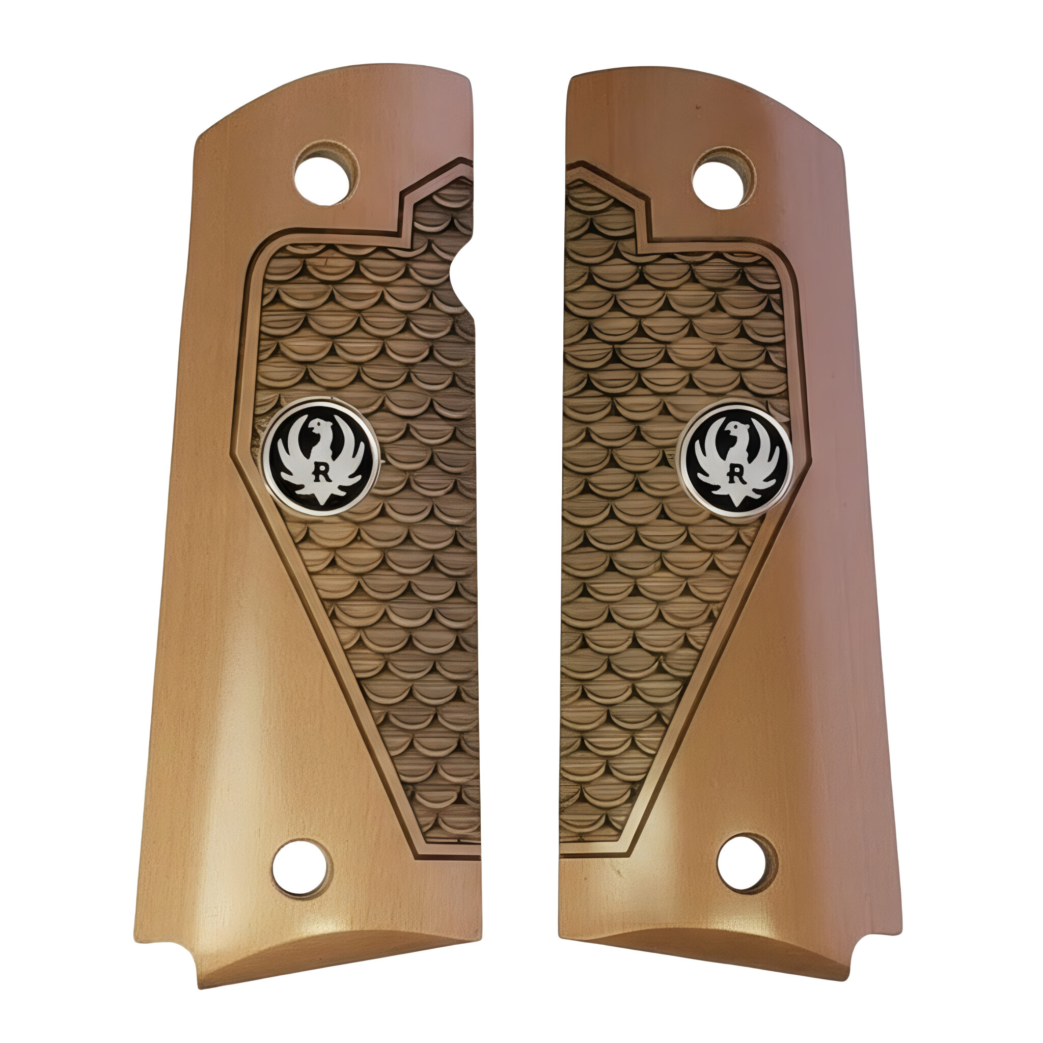 1911Full size Grips in faux Mammoth Bark with Black Ruger Medallion fits COLT and Most Clones