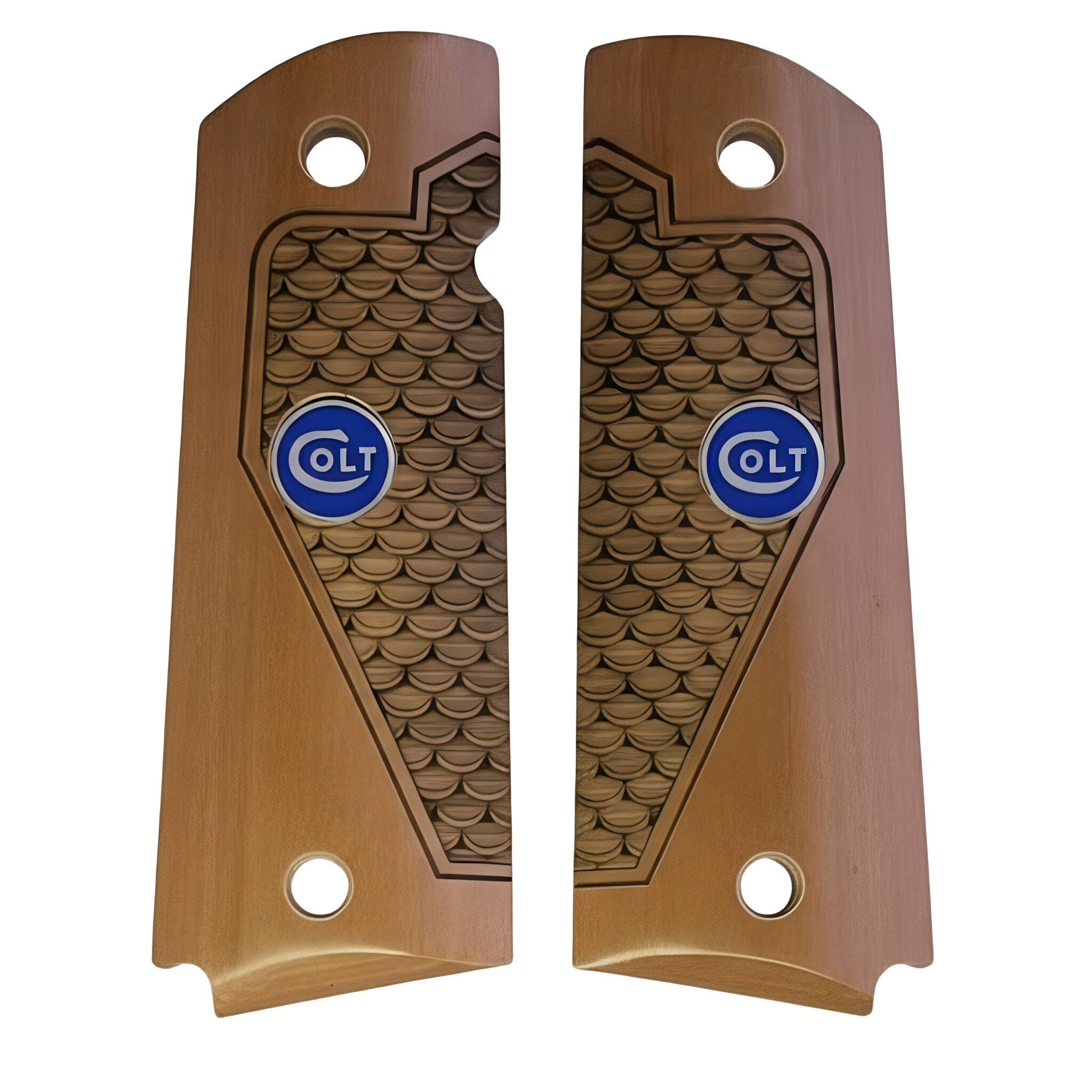1911Full size Grips in faux Mammoth Bark with Blue COLT Medallion fits COLT and Most Clones