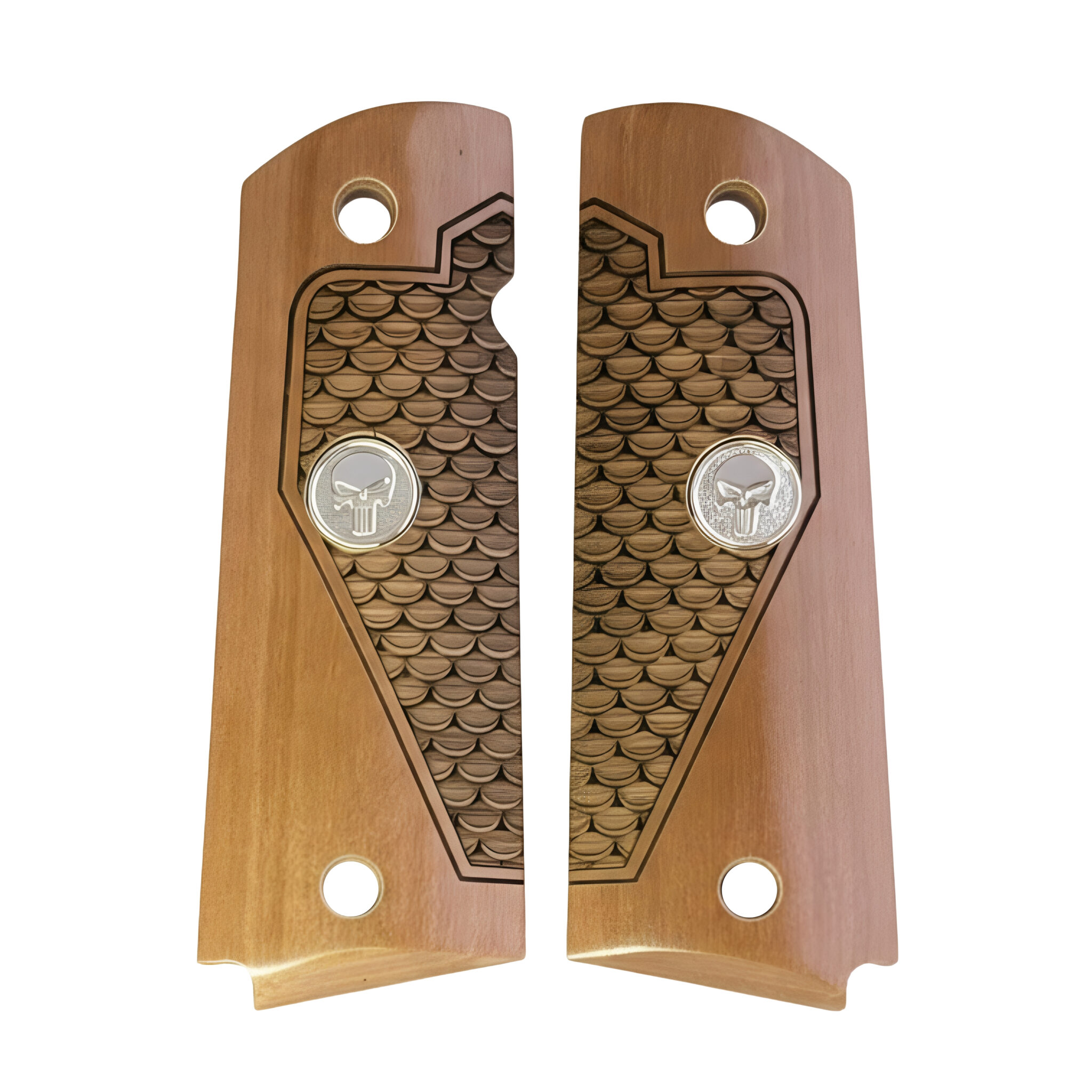 1911Full size Grips in faux Mammoth Bark with Silver Punisher Medallion fits COLT and Most Clones