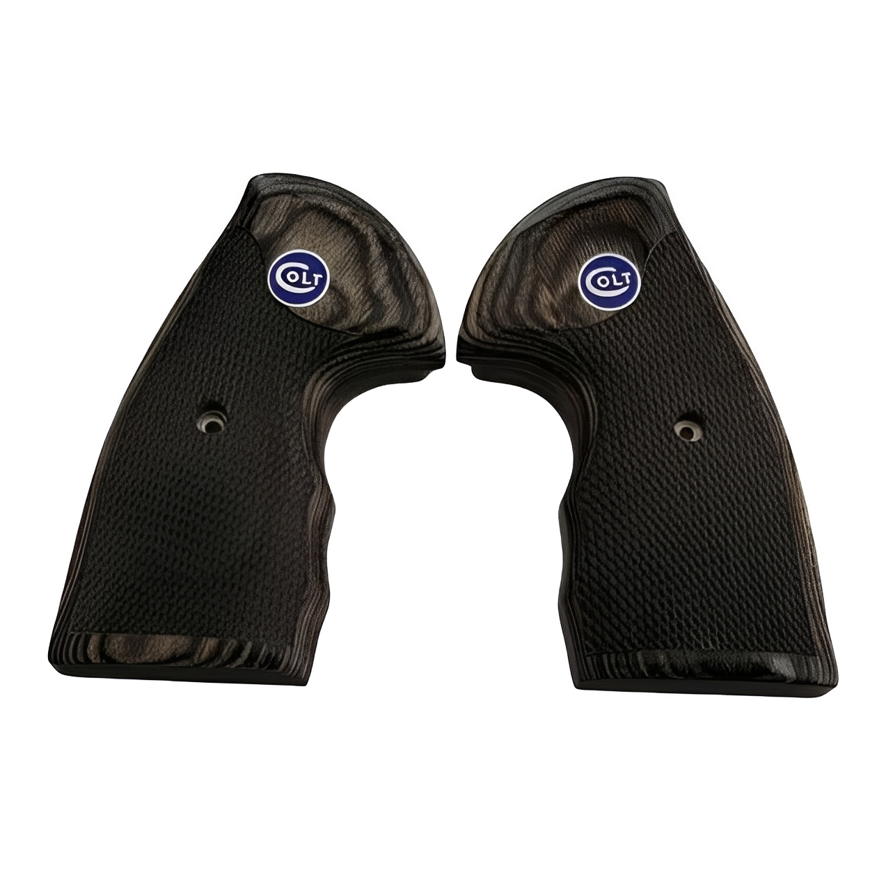 Black Rosewood Grips with a Blue Enamel Medallion with Silver COLT Letters for the Colt Python Grips, Colt Python 2020 Grips, Colt 2021 Anaconda