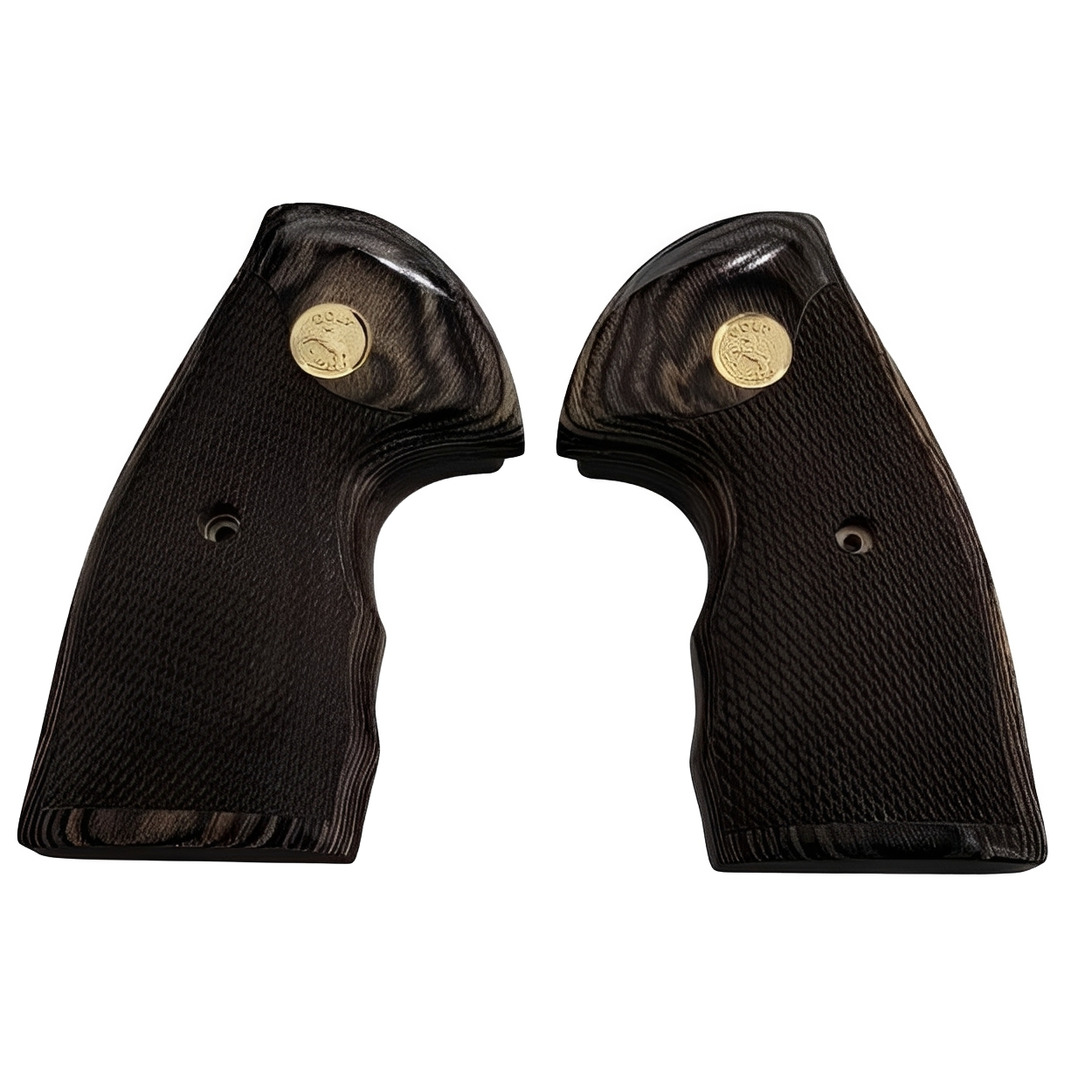 Black Rosewood Grips with a Gold Medallion with a Rearing Horse for the Colt Python Grips, Colt Python 2020 Grips, Colt 2021 Anaconda