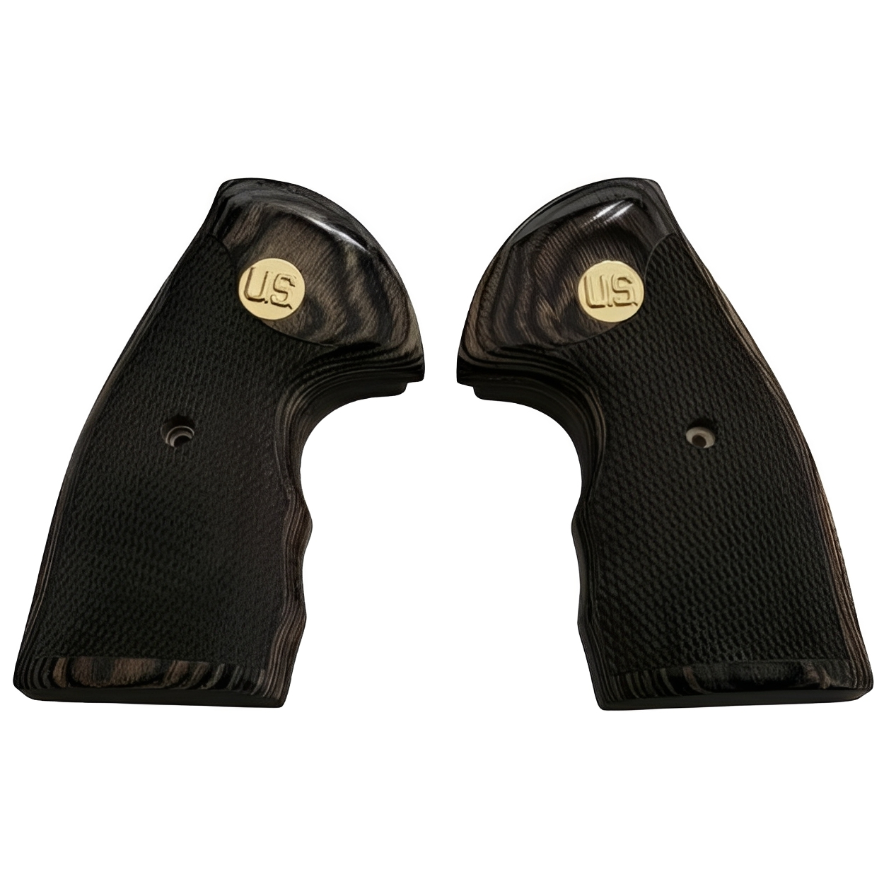 Black Rosewood Grips with a Gold Medallion with Raised U.S. Letters for the Colt Python Grips, Colt Python 2020 Grips, Colt 2021 Anaconda