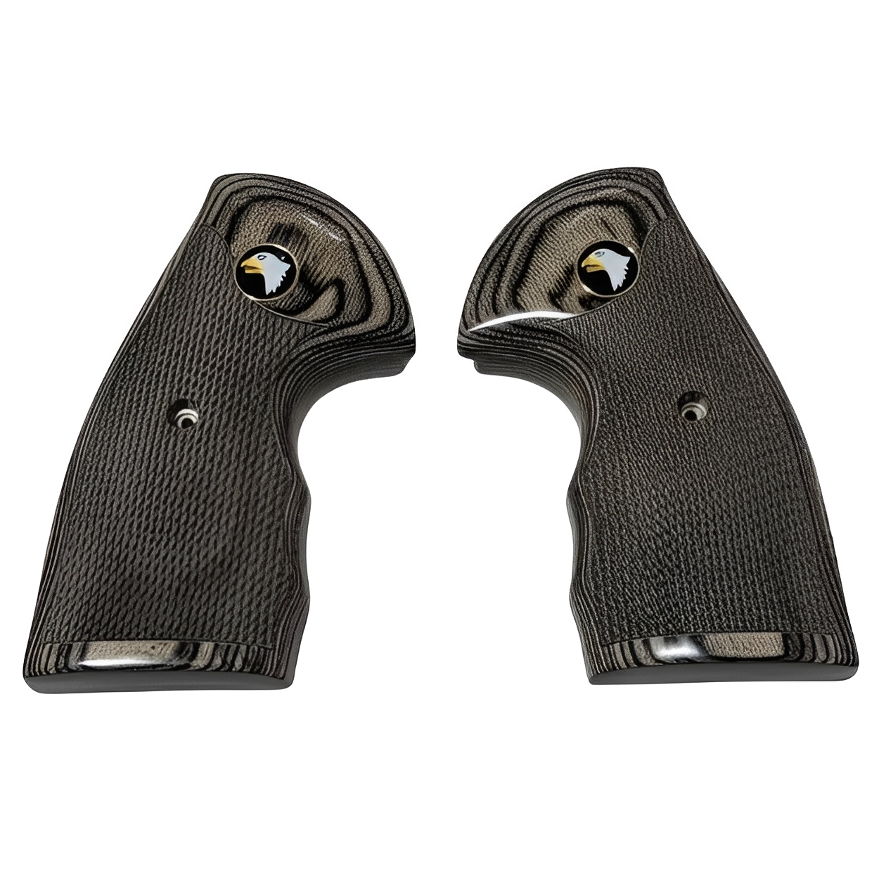 Elevate the look and feel of your favorite 2021-22 snake-frame revolvers with these Black Rosewood Dymondwood Grips. Designed specifically for the modern 3”, 4.25”, 6”, and 8” stainless steel models, these grips offer the perfect balance of aesthetic elegance and rugged durability. Featuring classic factory-style checkering and a signature medallion with pearl accents, they provide a secure, non-slip hold for a superior handling experience.