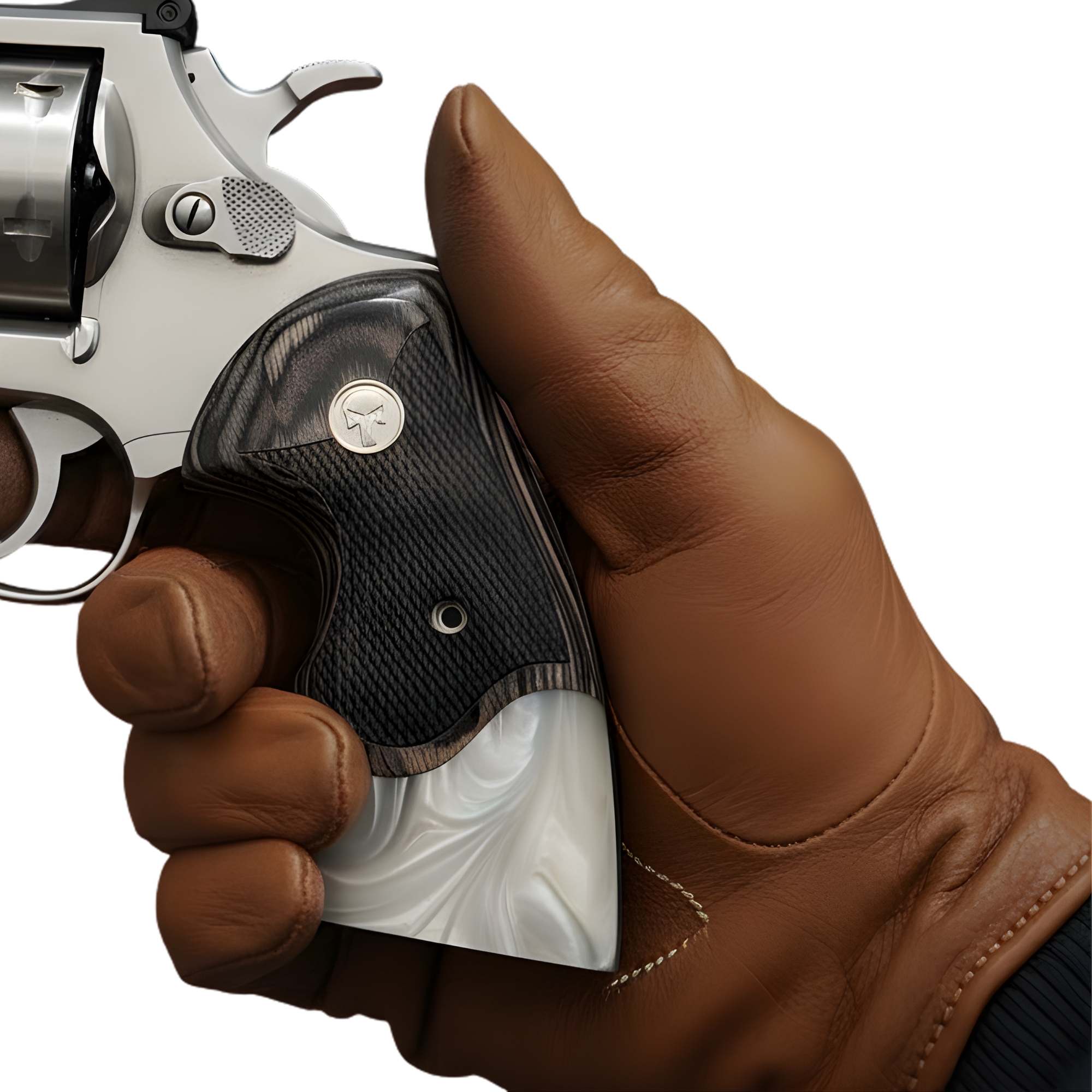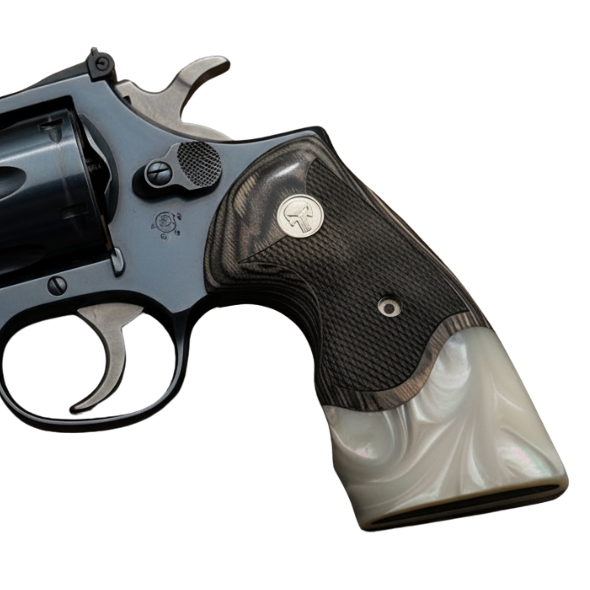 Colt Python Black Rosewood Grips Pearl Acrylic Silver Punisher Medallion