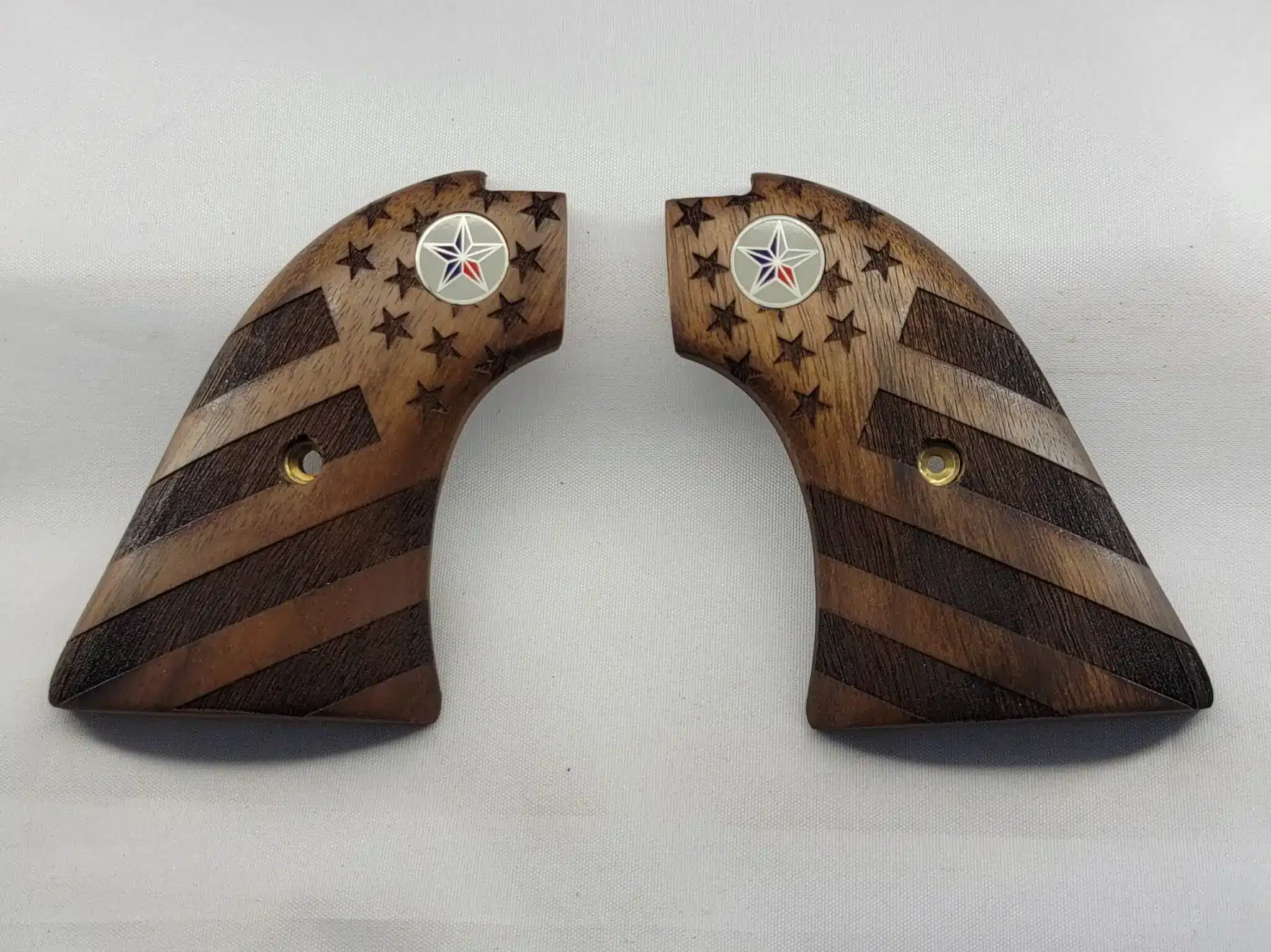 Heritage Rough Rider Grips – Walnut Carved American Flag & Texas Star Medallion