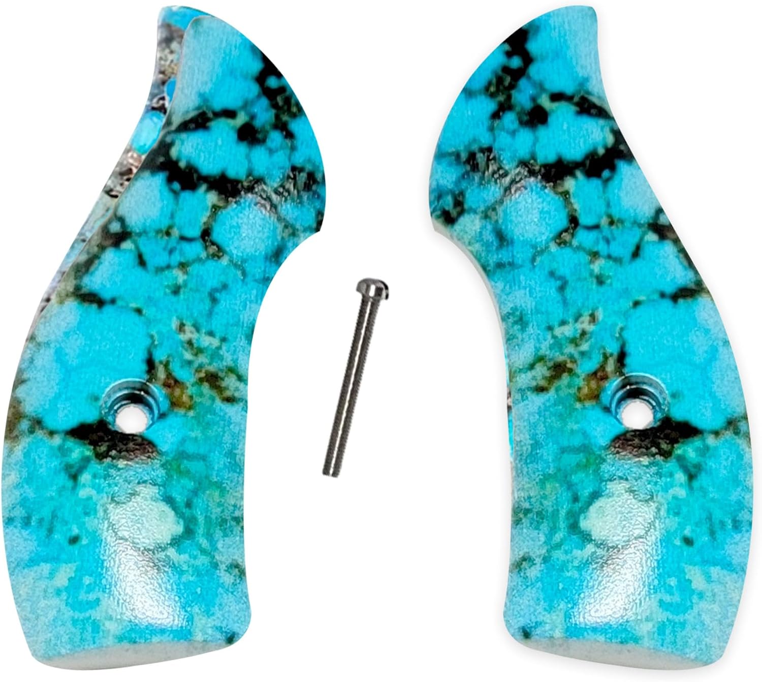 UV Printing of an HD Picture of Turquoise over acrylic pearl. This pair of gun grips are for Smith and Wesson J Frames. They are low profile and perfect for concealed models. Comes with installation screw. CUSTOM FIT for J ROUND models: 242, 30-33, 39, 317, 331, 332, 337, 340 (PD), 342, 350 PD, 351 C, 351 PD, 360, 386, 40, 42, 43 C, 442, 60 (LS), 63, 631, 632, 637 (CT), 638 (CT), 642 (CT), 642 LS, 940
