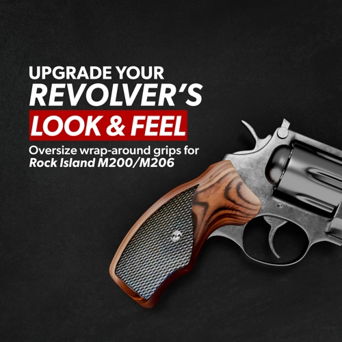Know your model before ordering. On the M206, these are the larger oversize version. On the M200, they fit well and sit fuller than the original plastic grips. They are not the same size as the standard checkered version. Browse our full Rock Island revolver grips collection to compare all options for your model.