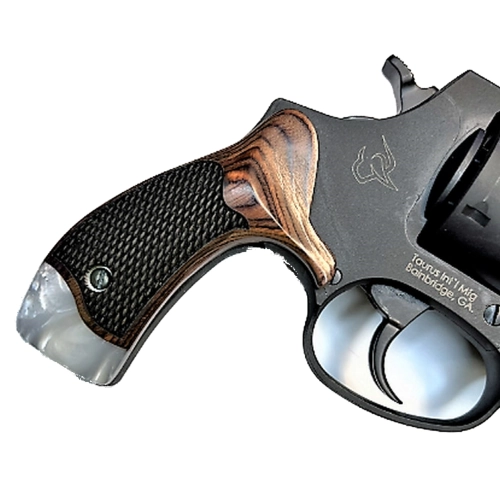 The same classic design inspired by S&W and Colt Detective revolvers. Now built precisely for Taurus. The rosewood grain and pearl accent together create a transformative look that stands apart from any factory grip.
